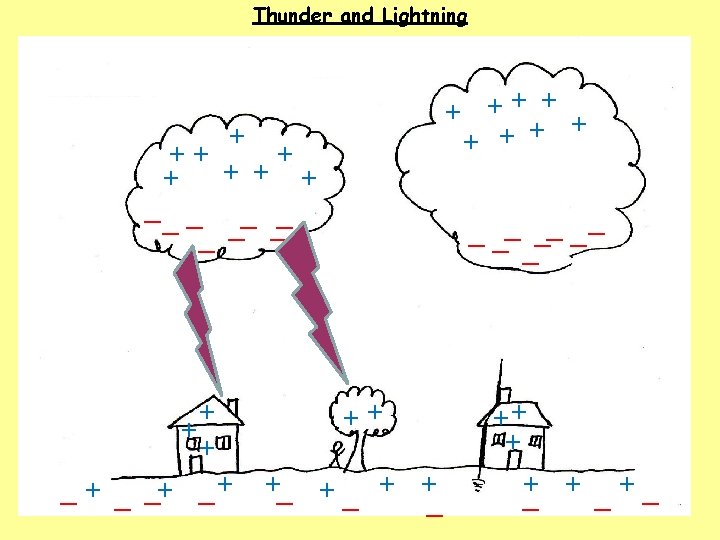 1. How do clouds become charged? 2. How do houses, trees, people and the ground become charged? 3. What happens when the charge becomes large?