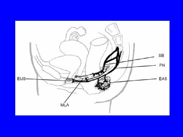 • 3. Electrical pudendal nerve stimulation • to improve the ability in controlling urination by exciting the pudendal nerve and inducing the rhythmic contraction of the pelvic floor muscles (including the urethral sphincter ) to strength the muscles, restore the normal positions of bladder neck and proximal urethra and increase urethral closure pressure. • 能直接兴奋阴部神经诱发盆底肌(包括 尿道括约肌)节律性收缩,从而增强盆 底肌肉力量,恢复膀胱颈部和近端尿道 的正常位置,提高尿道关闭压来改善控 尿能力。