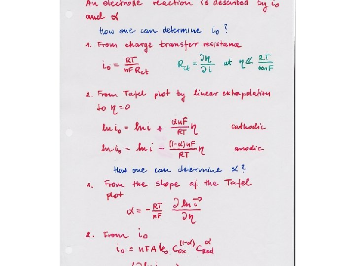 -mixed potential: example corrosion of Fe in HCl: cathodic reaction: 2 H+ + 2 e = H 2 Anodic reaction: Fe = Fe 2+ +2 e Slope = 2 H+ + 2 e = H 2 ln icorr Fe = Fe 2++ 2 e Ecorr