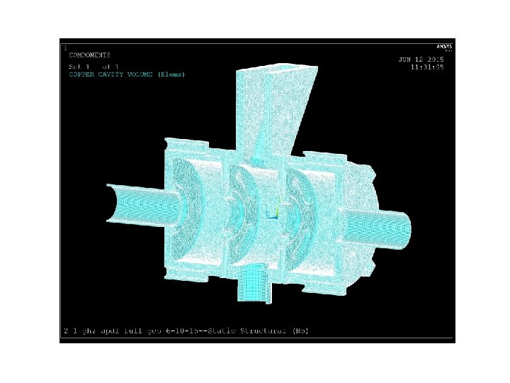 RF Analysis Frequency: 2114781678. 364 Hz CRITICAL AREAS: 0. 0008 m 6, 423, 586 Elements BODY AREAS: 0. 0015 m VOLUME: 0. 005 m • Regions near coupling slots, nose cones, waveguide and tuner are especially important for accurate frequency prediction üMesh density enhanced 6 x in this region • Maintains accuracy while keeping solution time convenient