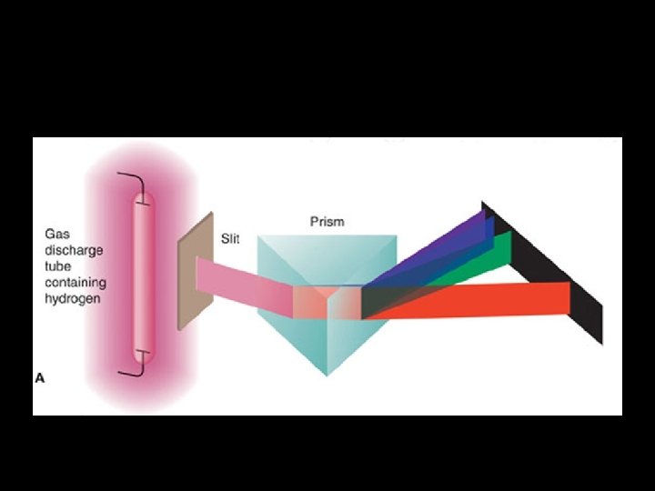 • This means that the spectrum shows all the frequencies of visible light • i. e. it contains all the colours, and has no gaps. • If we look at the spectrum from hydrogen gas (we are using Hydrogen as an example because it is the simplest element) We see something very different!