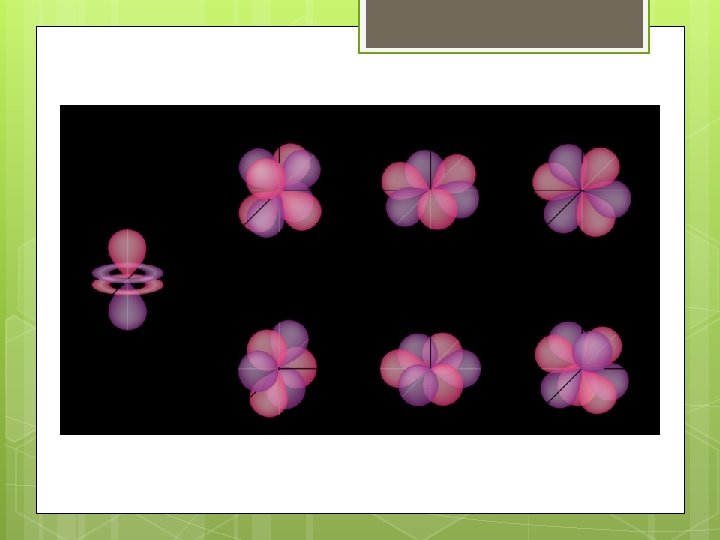 s, p, and d-orbitals A s orbitals: Hold 2 electrons (outer orbitals of Groups 1 and 2) Kelter, Carr, Scott, , Chemistry: A World of Choices 1999, page 82 B p orbitals: Each of 3 pairs of lobes holds 2 electrons = 6 electrons (outer orbitals of Groups 13 to 18) C d orbitals: Each of 5 sets of lobes holds 2 electrons = 10 electrons (found in elements with atomic no. of 21 and higher)