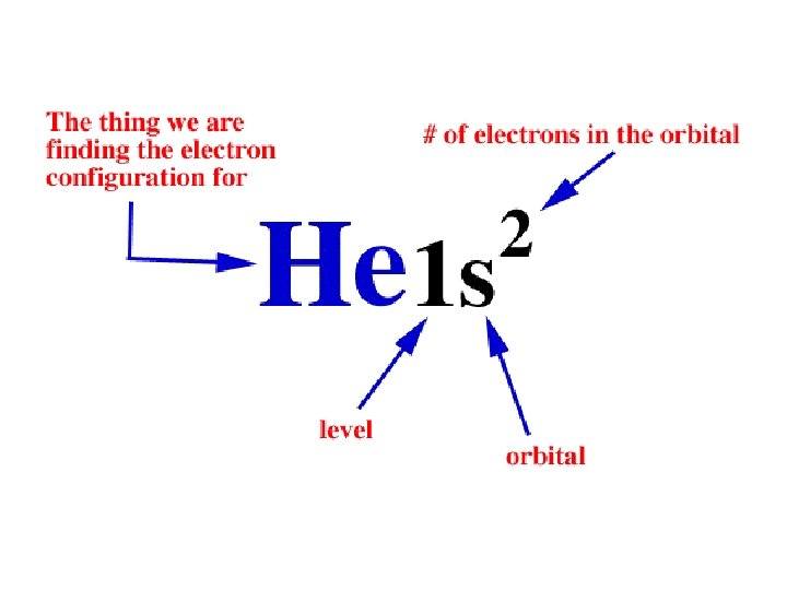 Writing Electron Configurations • To write out the electron configuration of an atom: – use the principal quantum number/energy level (1, 2, 3, or 4…) – use the letter term for each sub-level (s, p, d, or f); • don’t worry about orientation such as x, y, z axis but you do have to be able to draw these for IB – use a superscript number indicates how many electrons are present in each sub-level • hydrogen =1 s 1. • Lithium =1 s 22 s 1. – don’t write anything for spin