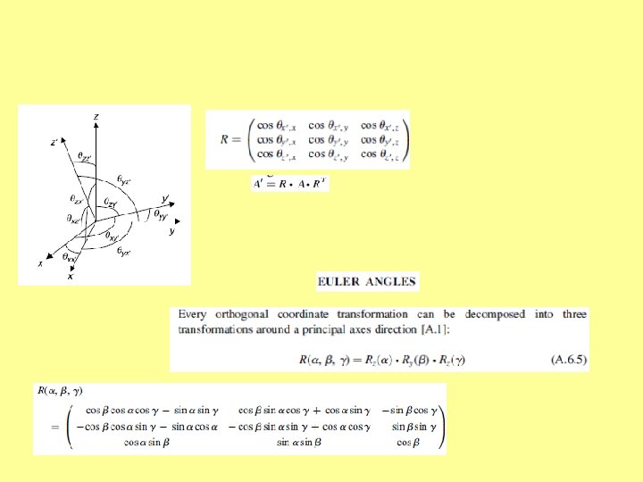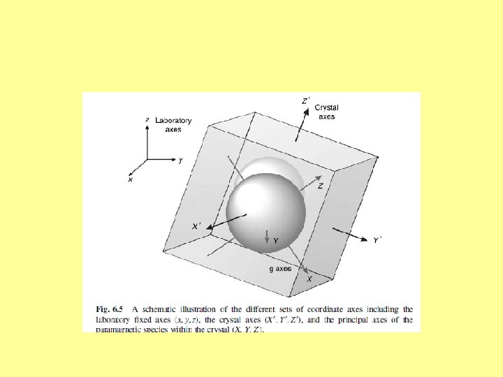 Reference axis systems (Cz. R) • Laboratory axis system (LAS) This is a system in which raw experimental EMR spectra are recorded. Two types due to two ways of selection of axes: LAS-S with respect to spectrometer, in particular, goniometer, LAS-C with respect to the crystal • Principle axis system (PAS) of the 2 nd-rank SH terms Any 2 nd-rank symmetric ‘tensor’ with non-diagonal components expressed in its original axis system as a 3 x 3 matrix may be brought by a proper transformation to the diagonal form. Such transformation, i. e. diagonalization, may be represented as a rotation in 3 dimensional space and the system of coordinates in which a ‘tensor’ X is diagonal is called the principal axis system (PAS) of this ‘tensor’. PAS-D, PAS-g, PAS-A, PAS-P