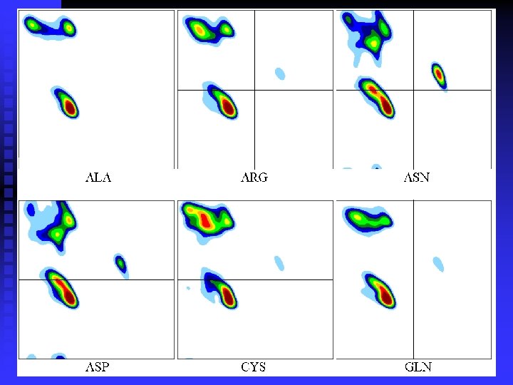 n Ramachandran plots are very informative Ramachandran was right in all essentials, but the details were wrong All distributions are along the diagonal, i. e. the and angles are coupled The -helices are very rigid The -sheet region is divided into two parts, but parallel and anti-parallel -sheets are nearly identical The Gly plot is very far from the predicted n Hovmöller, Zhou & Ohlson Acta Cryst D 58 (2002) 768 -776 n n n
