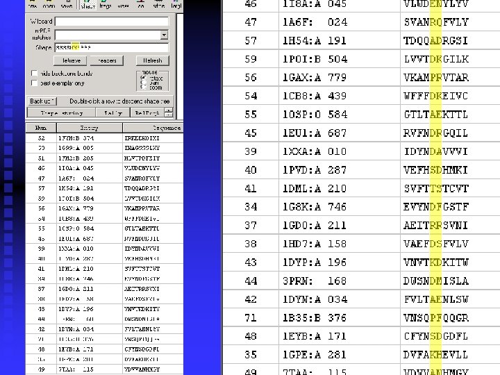 Shape String SSSSHHSSSS n n 107 cases of SSSSHHSSSS – 103 are well clustered, all with 3 or 4 H-bonds (yellow and green) in antiparallel β-sheets. Only 4 cases differ in shape – these are not connected by H-bonds. carbon oxygen nitrogen