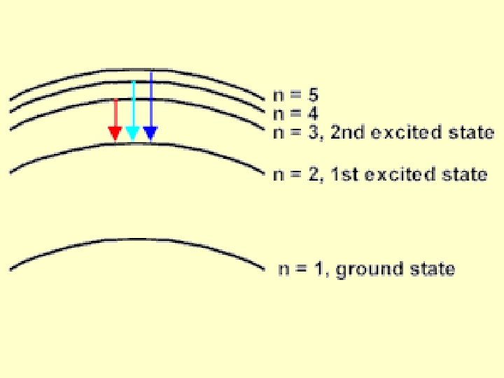 Bohr pictured the hydrogen atom as having discrete energy “levels” which the electron could “inhabit”. In it’s ground state, the electron would be in the lowest level (n=1) When the atom was “excited” the electron could “jump” to a higher level. When the electron came back down, it released energy in the form of light.