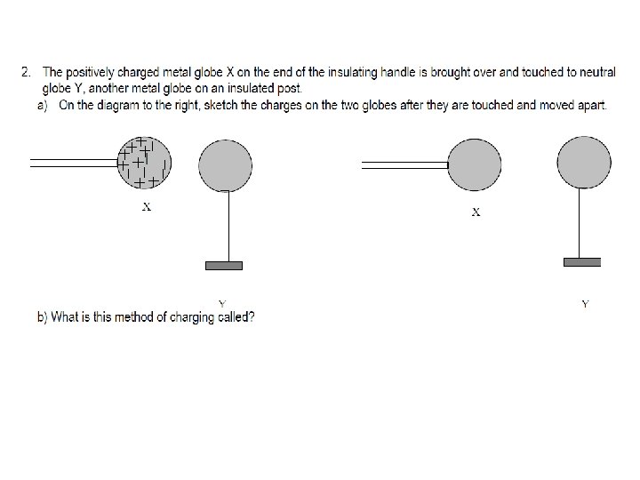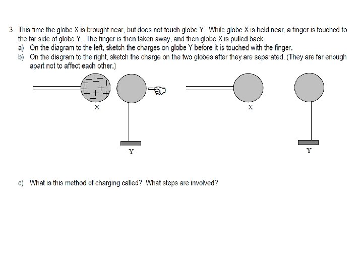 Try this… • Which of the diagrams below best represents the charge distribution on a metal sphere when a positively charged plastic tube is placed nearby?