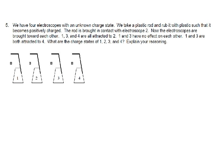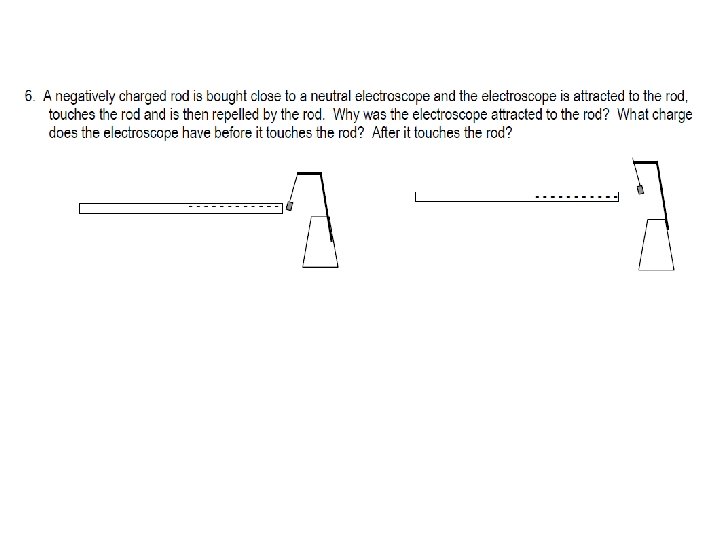 2. A negatively charged rod is brought near the electroscope: - - - - - - - - ++++Net charge is zero +- ++- +-