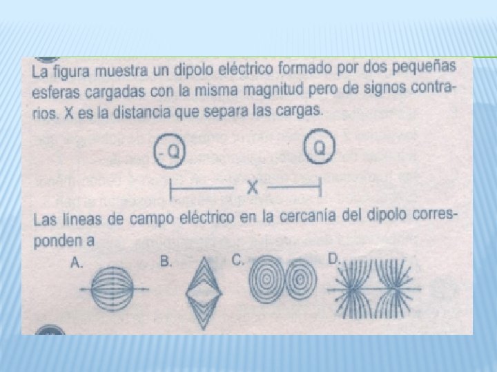 Campo eléctrico (E) Es una región del espacio es una región del espacio perturbada por cargas en reposo. Dicha región ejerce fuerza sobre cualquier carga que a ella se lleve. Sus características son: Dirección y sentido: se define como la dirección y sentido de la fuerza que ejercería sobre una carga puntual q 0. El campo eléctrico repele a partir de las cargas positivas y se atrae por las cargas negativas Unidad