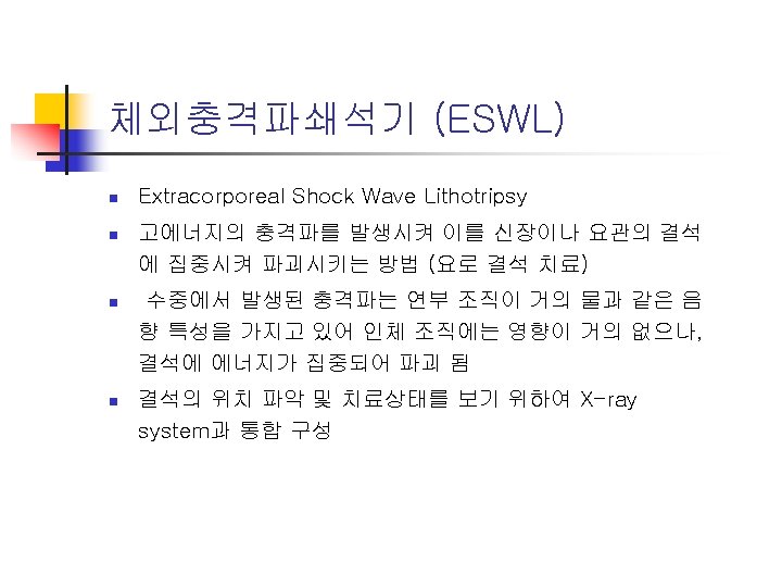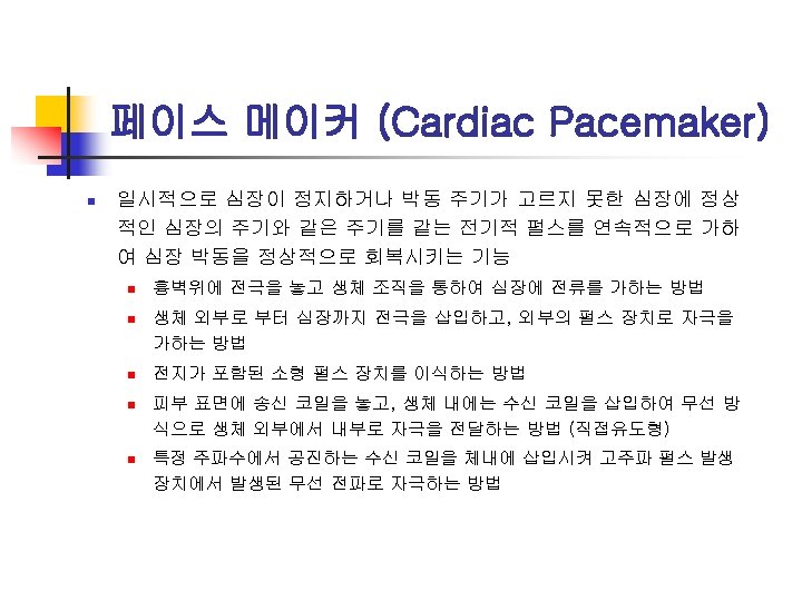 전기수술기 (Electrosurgical unit) n 일명 ‘Bovie’라고 불림 n High-frequency electric currents: 100 k. Hz - 5 MHz n Usage n n n incision, destruction, and removal of tissue to seal blood vessels for maintaining hemostasis Mode: cutting, coagulation, or blending of cutting/coagulation (a) Continuous cutting arc, (b) Interrupted random coagulation arc