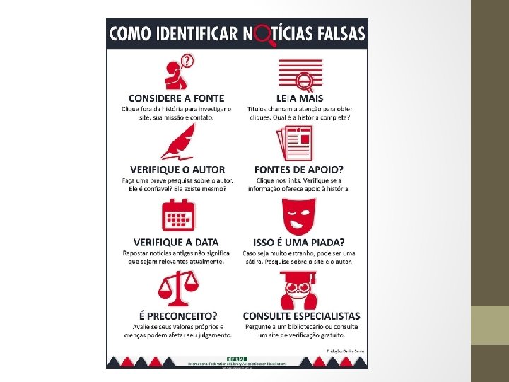 Sites “Detetives” • http: //www. e-farsas. com/ • https: //piaui. folha. uol. com. br/lupa/ • https: //g 1. globo. com/e-ou-nao-e/