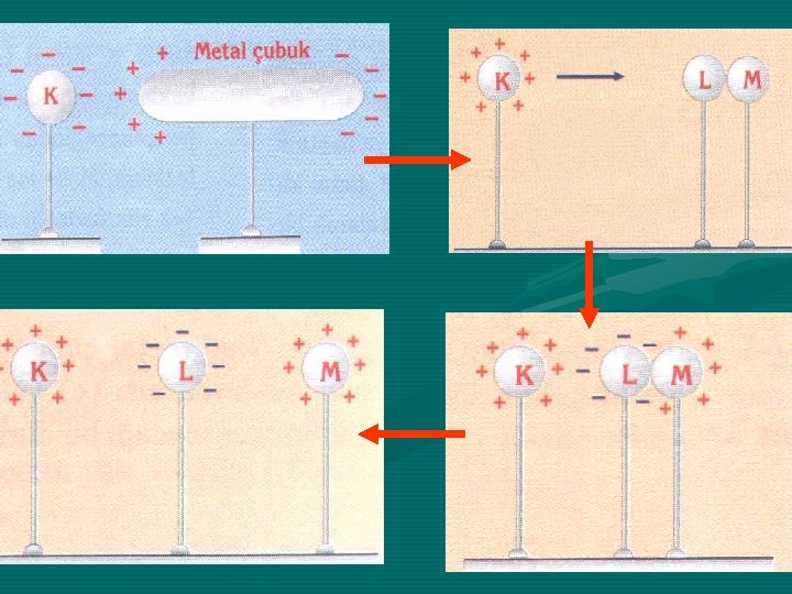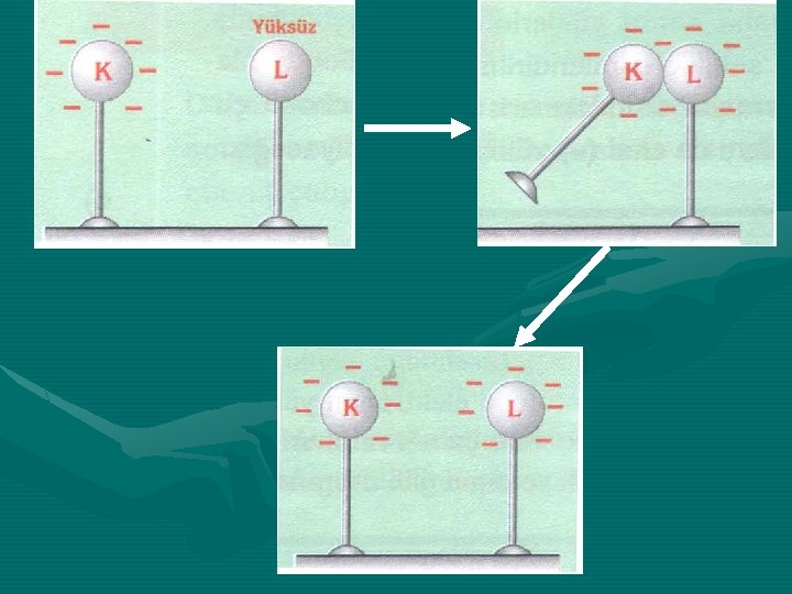 DOKUNMA İLE ELEKTRİKLENME • Elektrik yüklü bir cisim , nötr veya yüklü bir başka cisme dokundurulduğunda aralarında yük alışverişi olur. Bir süre sonra yükler dengelenerek yük alışverişi durur. Yük fazlalıkları paylaşılır. • Yüklü küreler iletken cisimlerin dokunmadan sonra alabilecekleri yük miktarları yarıçapları ile doğru orantılıdır.