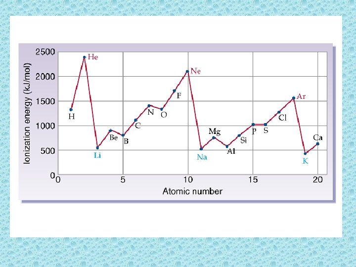 İyonlaşma enerjisi • Katyon: bir atom bir ve daha fazla elektron kayıp ettiği zaman oluşur. Na Na+ + e. Mg 2+ + 2 e. Bu iyonların oluşumu için enerjiye gerek vardır. Bir Ei 1, en düşük enerjidir. Bu enerji gaz halinde olan bir atomdan 1 elektron koparmak için verilen enerjidir. H + 1312 k. J H+ + e-