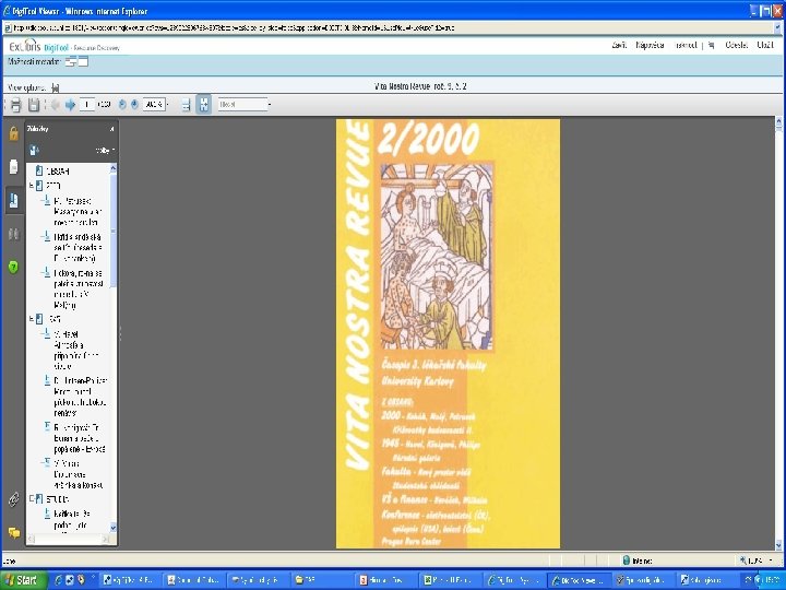 Digitální univerzitní repozitář n n n Budován od 2007 v systému Digi. Tool Původně pouze e. VŠKP, později rozšířeno i o preprinty, separáty, odborné časopisy vydávané na UK, statě ze sborníku, grantové a technické zprávy, historické mapy PřF a historické listiny Archivu UK v elektronické podobě, plánuje se rozšíření o studijní materiály Plánuje se synchronizace s CKIS pomocí technologie OAI a Z 39. 50 a vzdálený přístup pomocí LDAP