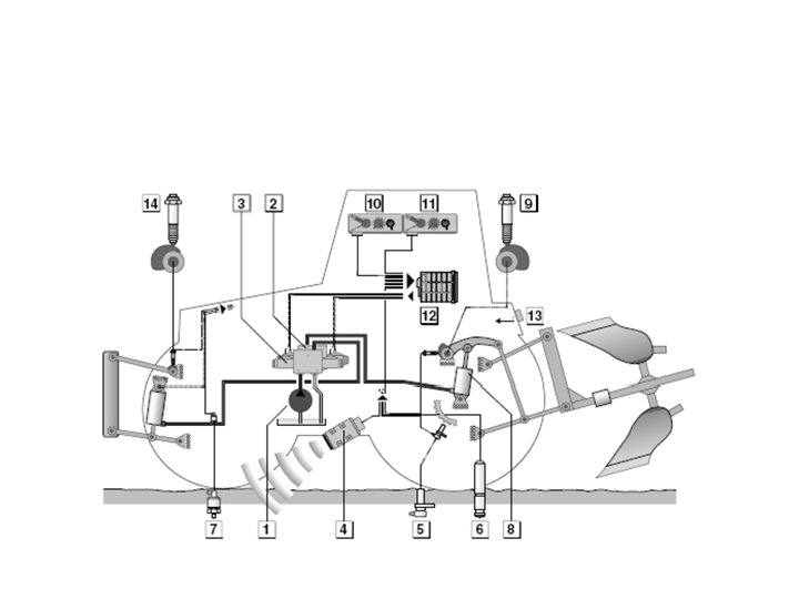 Instellingen Een elektronische hefregeling heeft over het algemeen de volgende instelmogelijkheden: • keuze tussen positieregeling en trekkrachtregeling; • werkhoogte/werkdiepte; • begrenzing hefhoogte; • werkschakelaar; • daalsnelheid; • reactiesnelheid; • dansonderdrukking.