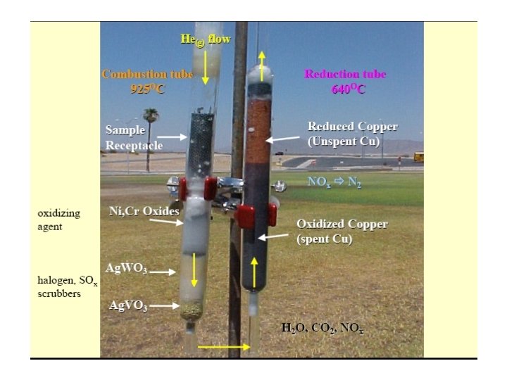• The solid sample is placed in autosampler • The tin capsule containing sample is burned in a pure oxygen environment (99. 996%).