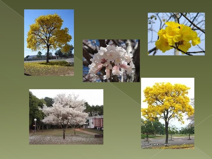 Outras árvores comuns na cidade � Ipê: Árvore nativa brasileira. Cresce devagar e começa a florir antes dos cinco anos, ainda com pouca altura. A madeira é dura, pesada e resistente. Há três espécies mais conhecidas, todas com cinco a dez metros de altura, comumente plantadas para efeito paisagístico nas regiões tropicais e subtropicais do país.
