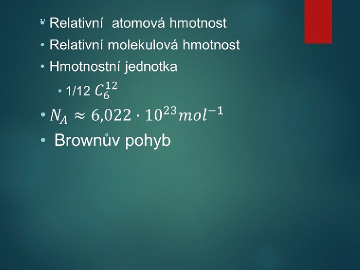 začátek 19. století – chemický atomismus • Josef Louis Proust [prust] (1754 – 1826) • John Dalton (1766 – 1844) • Joseph Louis Gay-Lussac (1778 – 1850) • Amadeo Avogadro (1776 – 1856) • Dmitrij Ivanovič Mendělejev (1834 – 1907) byl ruský chemik a tvůrce periodické tabulky prvků.