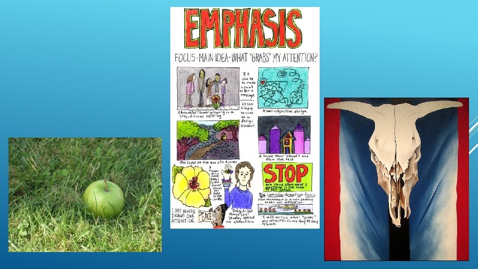 EMPHASIS – MAIN IDEA, THE MAIN FOCUS, THE THING YOUR EYE SEES FIRST.