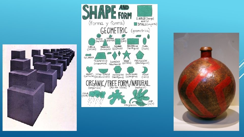 FORM – 3 -D FORMS CAN BE ACTUAL OR IMPLIED, THEY HAVE HEIGHT, WIDTH, AND DEPTH