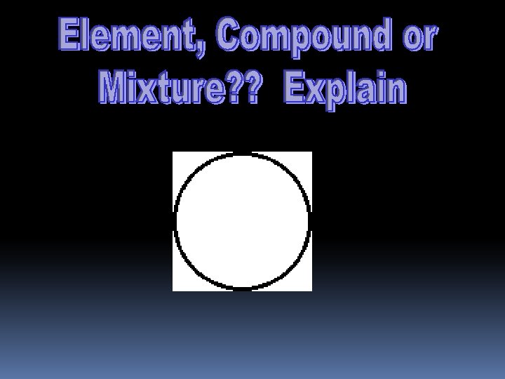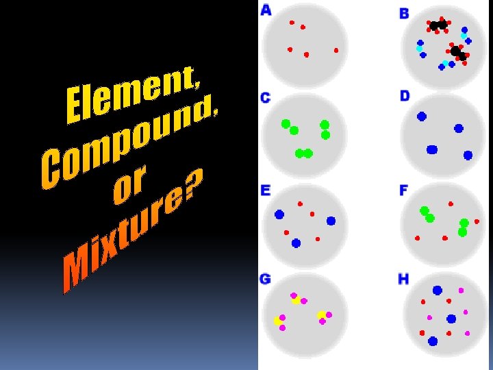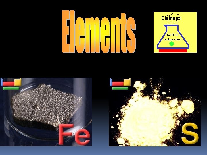 Element or compound? Look at the pictures below - is it an element or a compound? Element Compound