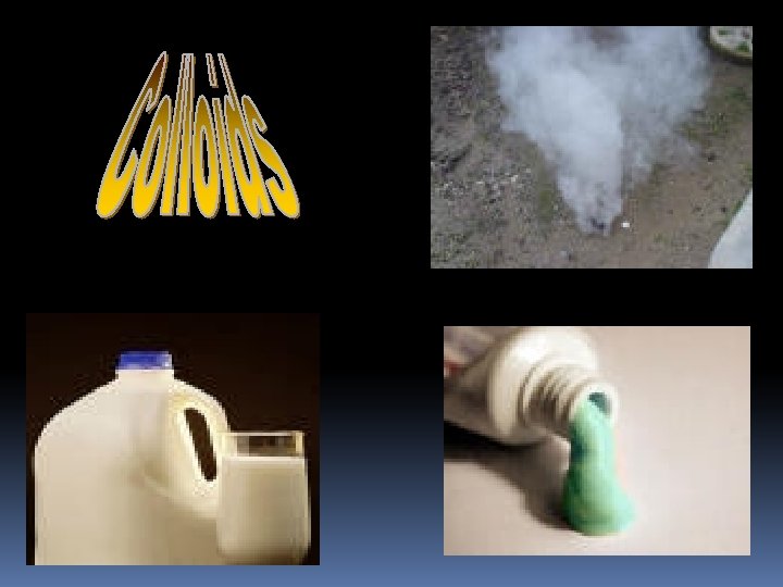 Heterogeneous Mixtures 6. Colloids Won’t settle out Cloudy-Scatters light Particles mix, don’t dissolve Milk, lotion, toothpaste
