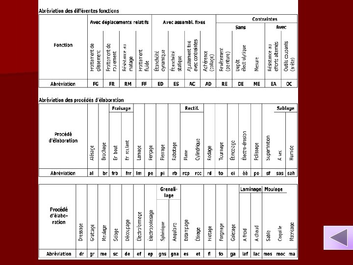 Surfaces terminales n Les 2 surfaces délimitant la cote condition sont appelés surfaces terminales. n Les surfaces de contact entre les pièces sont appelées surfaces de liaison. n Si la cote condition est positive on parle de jeu, dans le cas contraire on parle de serrage.