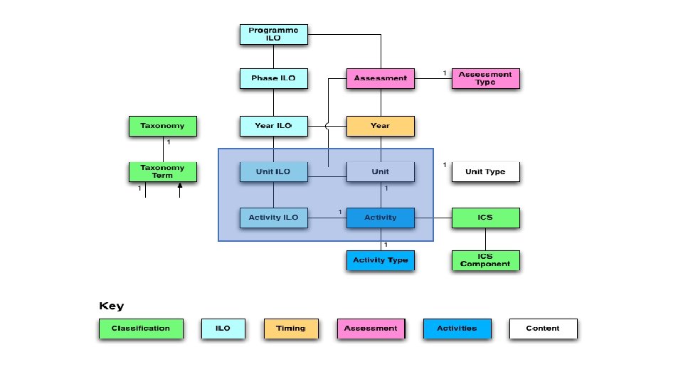 Tips • Preparation is Key: • • Your curriculum elements written and reviewed Components and Activities ILOS listed and imported A schematic of your curriculum A Controlled process • Start with the ’Knowns’ (usually Component to Activities) • Then do the ’Unknowns’ (ILOs to ILOs and Taxonomies) • Delegate but track and review progress • Project Management • Academic ‘buy-in’