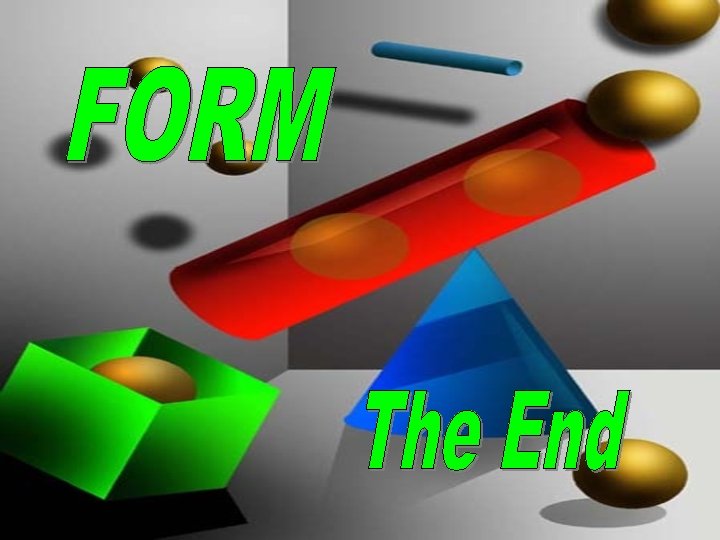 Form is 3 -Dimensional… It describes the shape and structure of solid objects. It contains mass and volume. Line is one dimensional: length Shape is two-dimensional: length and width Form is three-dimensional: length, width, and depth