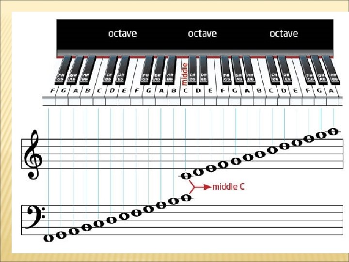 THE GRAND STAFF The combination of the Bass and Treble Clefs Middle C