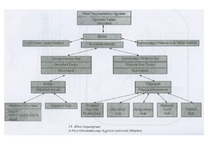 4. , Organogram • Egy szervezet felépítését, vagy működését, az egyes szervezeti egységek közötti kapcsolatokat szemlélteti
