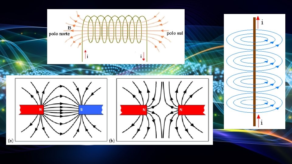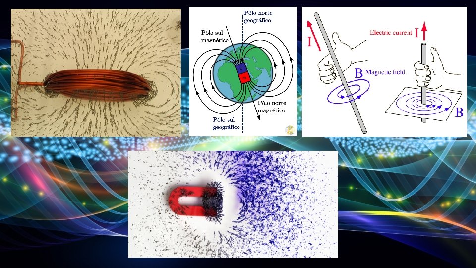 Campo magnéticos criados por correntes elétricas: Oersted estabeleceu pela primeira vez a ligação entre magnetismo e a eletricidade. Um campo magnético criado por um íman não se distingue de um campo magnético criado por uma corrente. A formas dos campos dependem das características dos ímanes ou dos fios condutores onde passa a corrente elétrica.