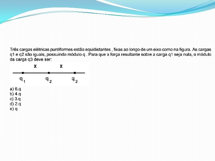Três esferas condutoras idênticas I, II e III têm, respectivamente, as seguintes cargas elétricas: 4. q, -2. q e 3. q. A esfera I é colocada em contato com a esfera II e, logo em seguida, é encostada à esfera III. Pode-se afirmar que a carga final da esfera I será: a. q b. 2 q c. 3 q d. 4 q e. 5 q
