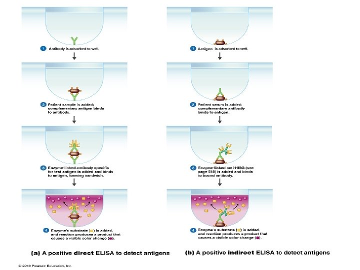 alkaline phosphatase , unbound enzyme –linked Ab is washed from the well. 4 -The plate is washed to remove the unbound antibodyenzyme conjugates. 5 -the enzymes substrate is added to it enzymatic activity is indicated by a color change that can be visually detected the test will be positive if the Ag has reacted t step. If the Ag was not specific for the Ab adsorbed to the wall of the well , the test will be negative because the unbound Ag will have been washed