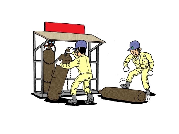 Oksijen tüplerinin taşınması • A ve B çalışanları oksijen tüplerini, tüplerin güvenli bir şekilde muhafaza edildiği bölmeden alarak boş olanlarla değiştirmekteler. Çalışan A, 50 kg boş tüpü yerinden çıkartırken diğer çalışan dolu tüpü ( santimetrekareye 150 kg basınçlı) ayağıyla bölmeye doğru yuvarlayarak götürmektedir