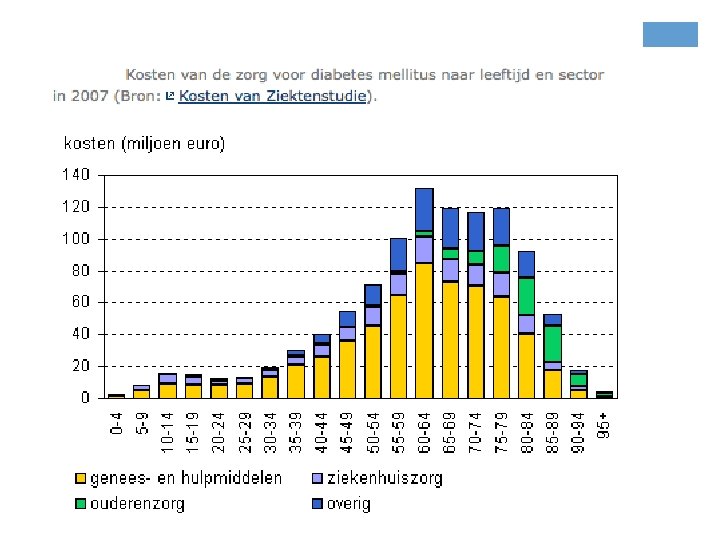 + Nieren en diabetes 45% van de mensen met nierfalen heeft diabetes mellitus