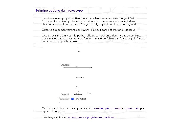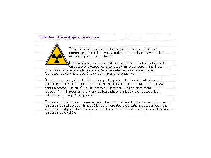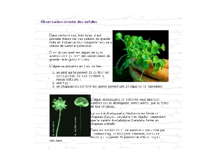 Les moyens d’étude de la cellule – Observation directe des cellules: expérience sur Acetabularia – Observation directe des cellules: échange de noyaux – – Description du microscope optique Principe optique du microscope Le microscope électronique à transmission Le microscope électronique à balayage – Utilisation des isotopes radioactifs – Fractionnement cellulaire