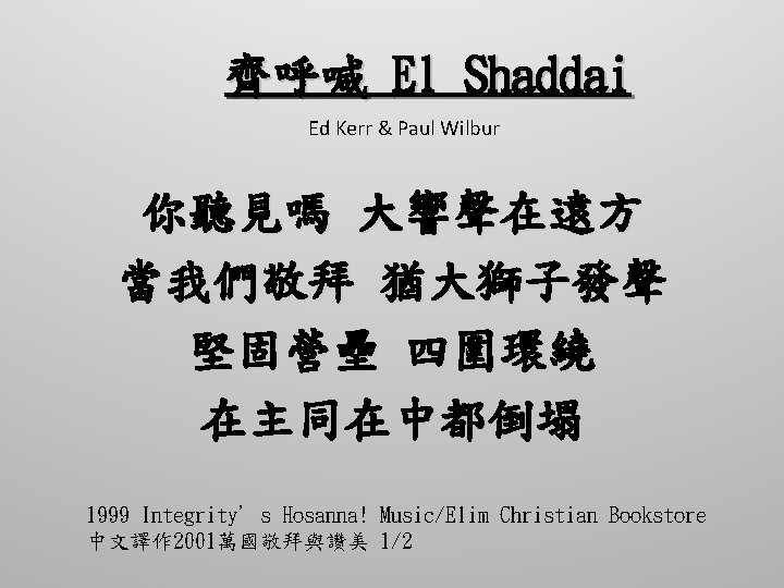 Elohim Ki ko ahav Elohim meta olam At Slides: 7 Download presentation 如此的愛 因神是愛 Elohim 愛世上人 Ki ko ahav Elohim meta olam 賜給我們 祂獨生愛子 At ki mata Et lo yechidom 叫一切相信的 Lama la loyuva Kolama miyimo 不至滅亡 反得永生 Lela yimcha chayeye olam 我心旋律 詞:約3: 16 曲:Alex Atlas 哈利路亞! Hallelujah 哈利路亞!阿們!(x 2) Hallelujah Amen 我心旋律 詞:約3: 16 曲:Alex Atlas 2/2