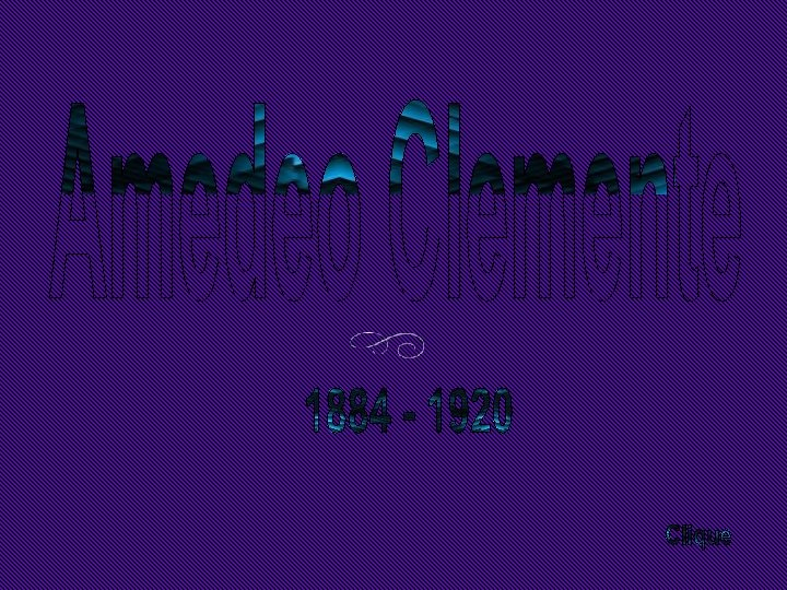 Em 1906, o pintor e escultor italiano Amedeo Clemente Modigliani se instalou em Paris, onde teve contato com muitos artistas, sendo evidente a influência de Cézanne em sua obra, tanto na distorção deliberada da imagem quanto no uso livre de grandes áreas coloridas. Hoje seus retratos graciosos e nus envolventes imediatamente evocam seu nome, mas, em vida, teve que lutar contra pobreza e doenças, morrendo de tuberculose aos 35 anos. Outros dados biográficos são encontrados no pps “Amedeo Clemente Modigliani 1”, junto com os retratos femininos. Este pps, de número 2, aborda somente retratos masculinos, enquanto os nus foram apresentados no html “A Pintura de Amedeo Clemente Modigliani”. Amedeo Clemente Modigliani (1884 -1920)