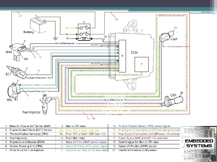 ECU components • • • 8 -32 bit 40 MHz microprocessor Analog-digital converter High-level digital outputs Digital-analog converter Signal conditioner Communication chips ▫ controller-area-networking, 500 Kbps