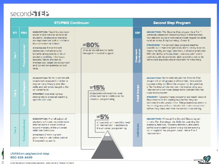 Why Second Step? • easy to teach • engaging for students • shared language • wealth of supportive resources available • easily usable for all three tiers • aligned to Common Core and American School Counselor Association Mindsets & Behaviors