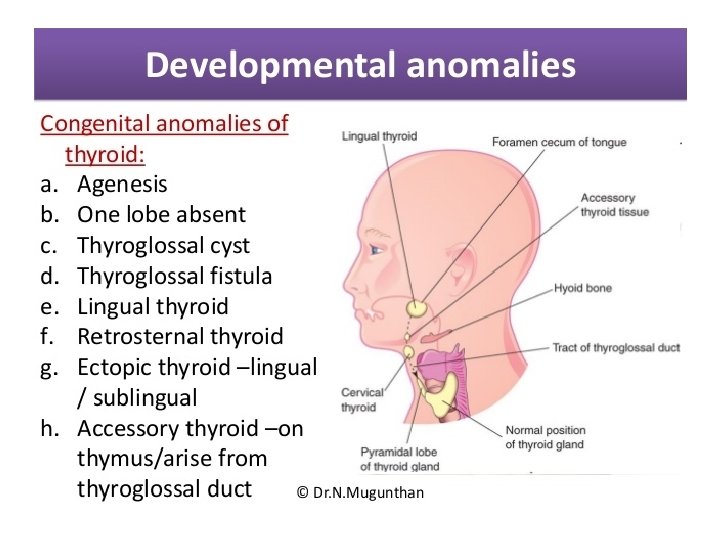 Questions • Embryology & anomalies thyroid • Embryology & Anomalies of tongue • Embryology & nerve supply of tongue • Development of teeth • • Anomalies of tongue Thyroglossal duct Thyroglossal cyst Anomalies of thyroid
