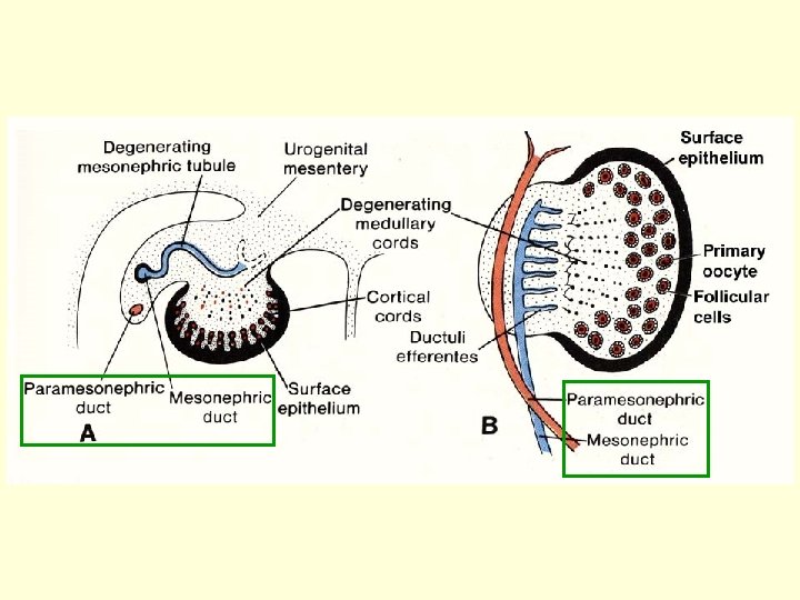 Primary proliferation (male) Secondary proliferation (female) TESTIS ♂ INDIFFERENT GONAD Tunica albuginea primary sex cords = medullary cords OVARY ♀ secondary sex cords = cortical cords ONLY in ovary