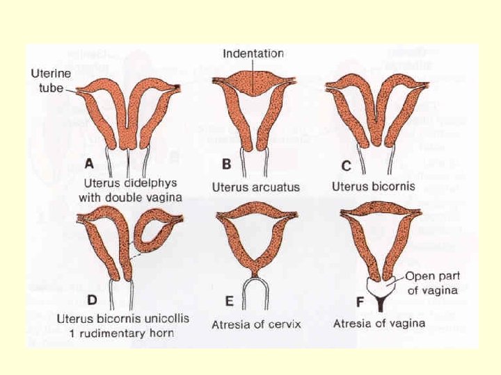 Congenital malformations – 2 defects of growth, position or cleft local manifestation • • • Kryptorchidism Hydrocele testis Hypospadias, epispadias _________________ Developmental defect of uterus (and vagina) uterus et vagina separatus, uterus bicornis, uterus septus or subseptus, uterus unicornis etc.