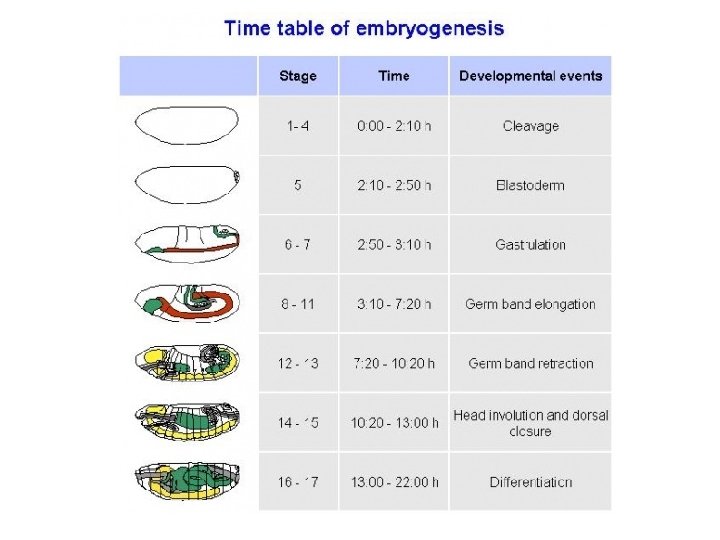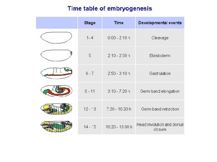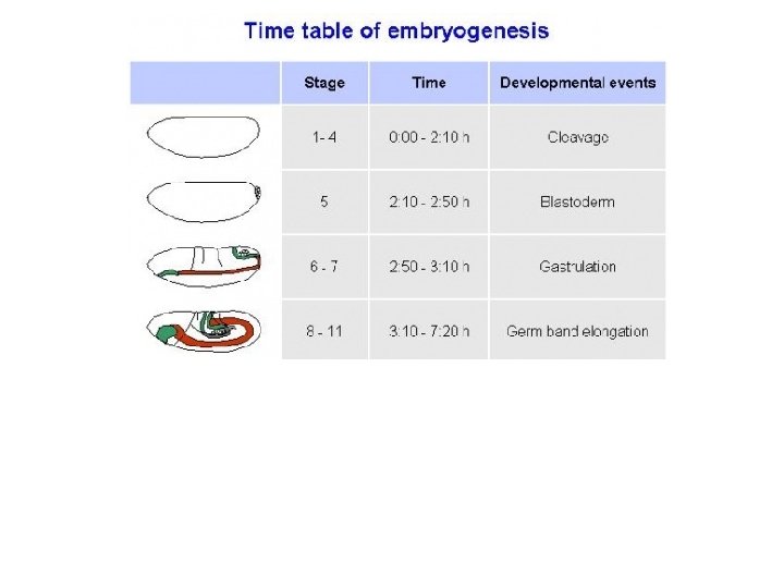Developmental stages of Drosophila (10 -12 days) Egg Larva (3 instars) Pupa Adult