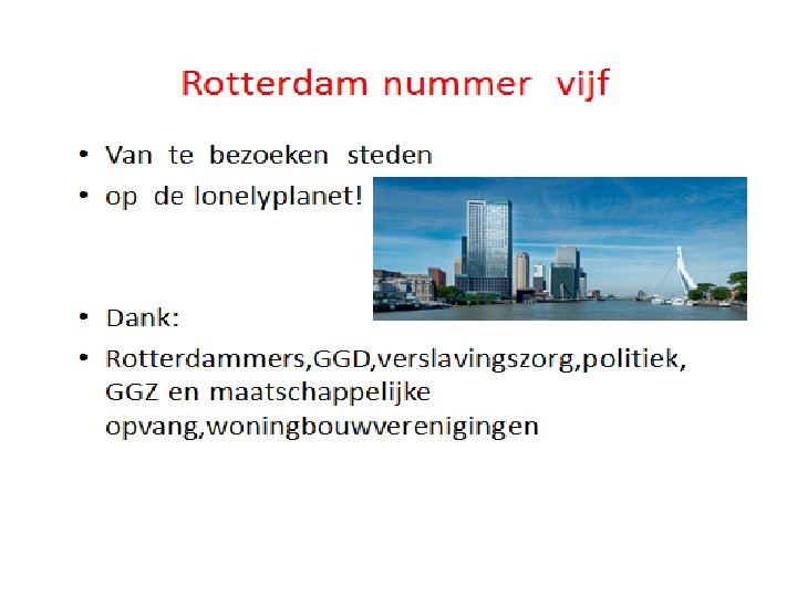 Programma • • • Inleiding Slecht nieuws -onverzekerden -mystery guests -Venlo/Dordrecht Goed nieuws -effecten plan van aanpak -Rotterdam op de kaart Aanbevelingen