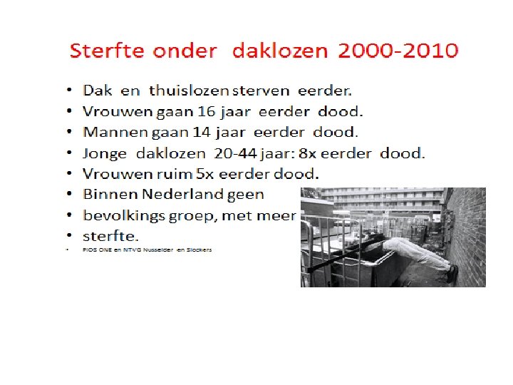 5 x meer niet natuurlijke dood niet 5% maar 25% • • • Ongevallen Suïcides Moord Euthanasie Overdoseringen • Na plan van aanpak wel fors lager!!