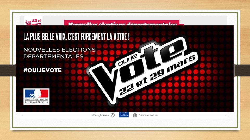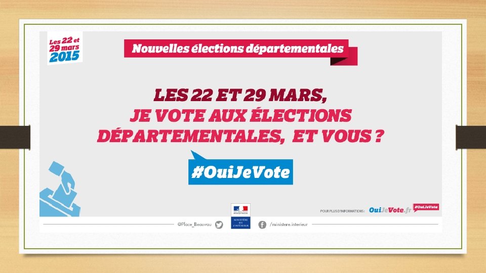 LE VOTE EST UN MOYEN EFFICACE D’ACTION • APPUI SUR DIFFERENTES CAMPAGNES POUR LE VOTE • CAMPAGNE DU MINISTERE DE L’INTERIEUR POUR LES ELECTIONS DEPARTEMENTALES DE MARS 2015 « #Oui. Je. Vote »