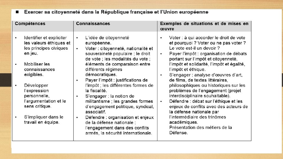 3ème étape : clarification des connaissances exigibles
